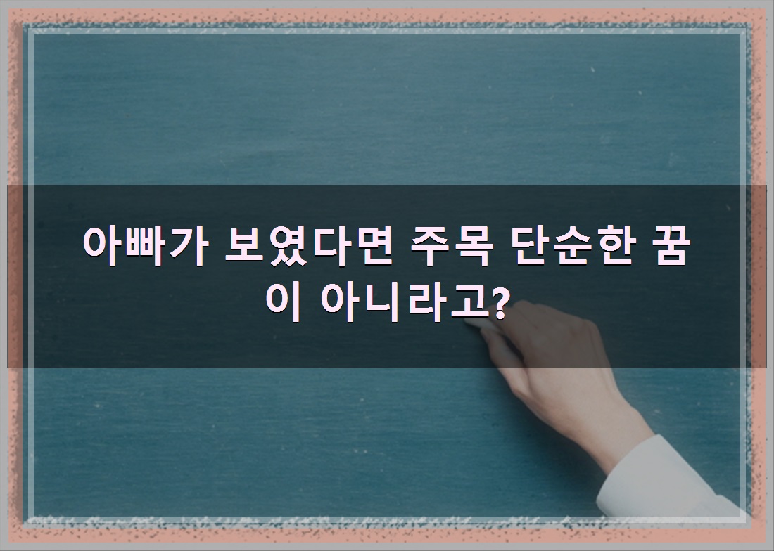 여러분, 혹시 아빠 꿈 꿔본 적 있으세요? 그냥 개꿈이겠거니 하고 넘겼다면 큰 오산입니다 꿈속의 아버지는 우리가 생각하는 것보다 훨씬 더 많은 이야기를 품고 우리에게 말을 걸어온다니까요. 기분 좋은 소식을 전해주기도 하고, 때로는 조심하라는 경고를 보내기도 하는 아빠 꿈 지금부터 그 숨겨진 이야기들을 한번 자세히 파헤쳐 볼까요? 이번기회에 제대로 확인해드립니다.