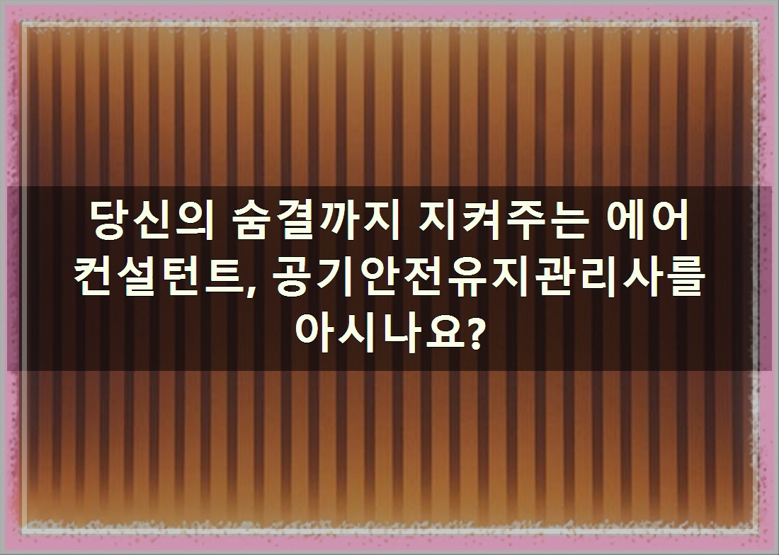 정리드린 글은 당신의 숨결까지 지켜주는 에어 컨설턴트, 공기안전유지관리사를 아시나요? 입니다. 부디 도움이 되셨길 바랍니다.