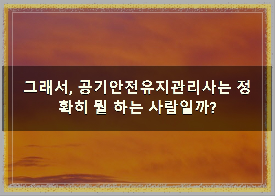 그래서, 공기안전유지관리사는 정확히 뭘 하는 사람일까?