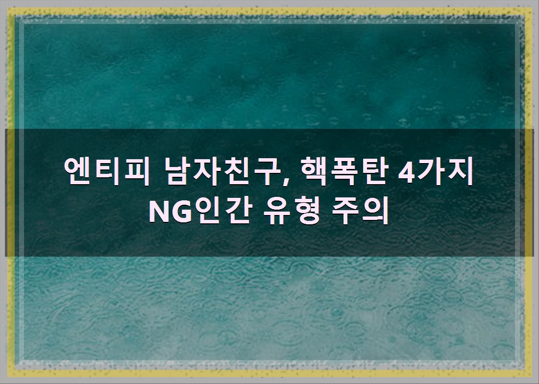 정리드린 내용은 엔티피 남자친구, 핵폭탄 4가지 NG인간 유형 주의 입니다. 위 내용들이 좋은 정보가 되셨길 바랍니다.