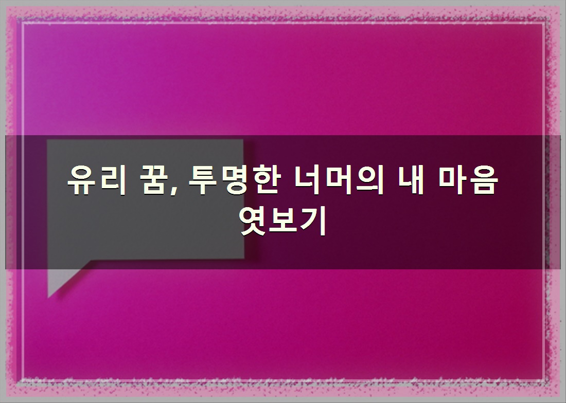 밤마다 찾아오는 꿈, 그 신비로운 세상은 때론 우리에게 알쏭달쏭한 메시지를 던지곤 하죠. 특히 꿈속에 등장하는 '유리'는 그 맑고 투명한 모습만큼이나 참 다양한 이야기들을 품고 있대요. 예로부터 꿈은 우리 무의식의 거울이자 미래를 슬쩍 보여주는 신비로운 그림 같은 존재였는데, 그중 유리 꿈은 유난히 흥미로운 소재랍니다. 오늘은 그 유리 조각들이 우리에게 전하는 심리 상태와 미래 징조를 한번 같이 파헤쳐 볼까요? 바로 내용확인해 보겠슴니다.