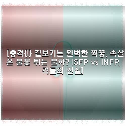 [충격! 겉보기는 완벽한 짝꿍, 속살은 불꽃 튀는 불화? ISFP vs INFP, 격돌의 진실] 관련내용 확인 해 보시겠습니다.