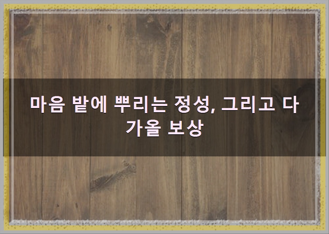 마음 밭에 뿌리는 정성, 그리고 다가올 보상