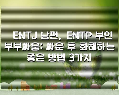 ENTJ 남편, ENTP 부인 부부싸움: 싸운 후 화해하는 좋은 방법 3가지 바로 보시겠습니다.