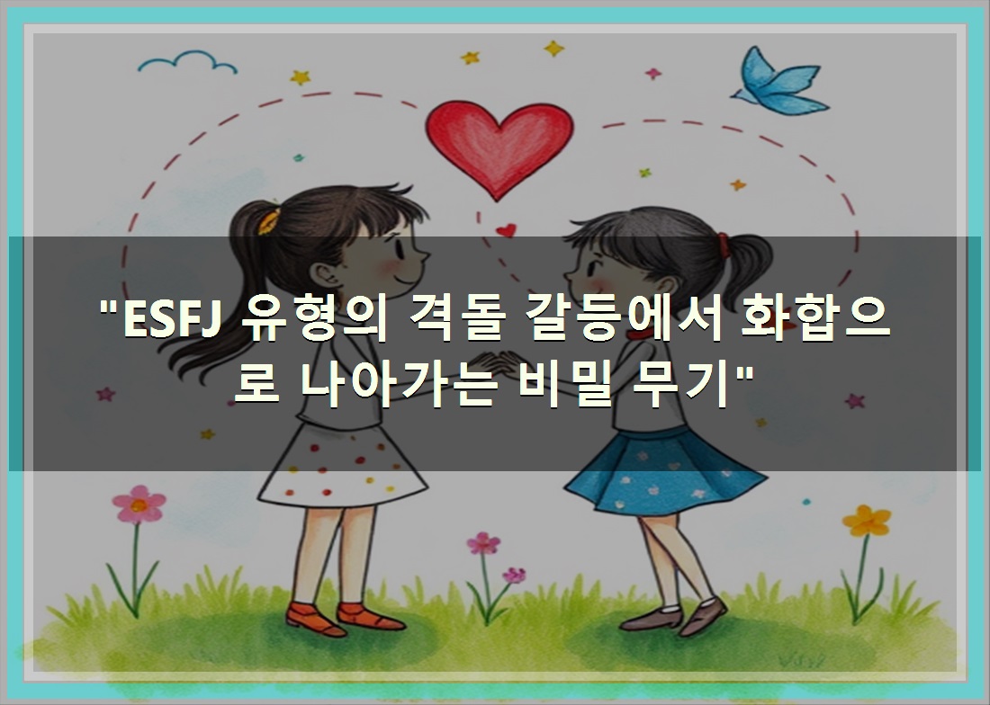 정리드린 내용은 "ESFJ 유형의 격돌 갈등에서 화합으로 나아가는 비밀 무기" 이였습니다. 도움이 되셨으면 합니다.