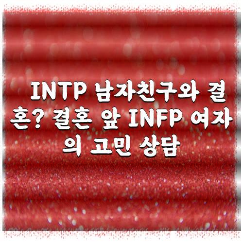 상단 정리해드린 글은 INTP 남자친구와 결혼? 결혼 앞 INFP 여자의 고민 상담 입니다. 찾으셨던분께 좋은 내용이 되셨길 바랍니다.